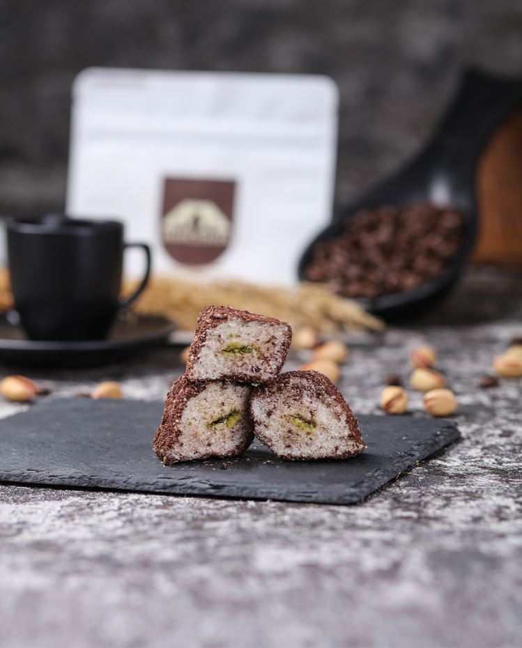 3. Toz Antep fıstığı ile kaplanarak yoğun aroma kazandırılmaktadır.