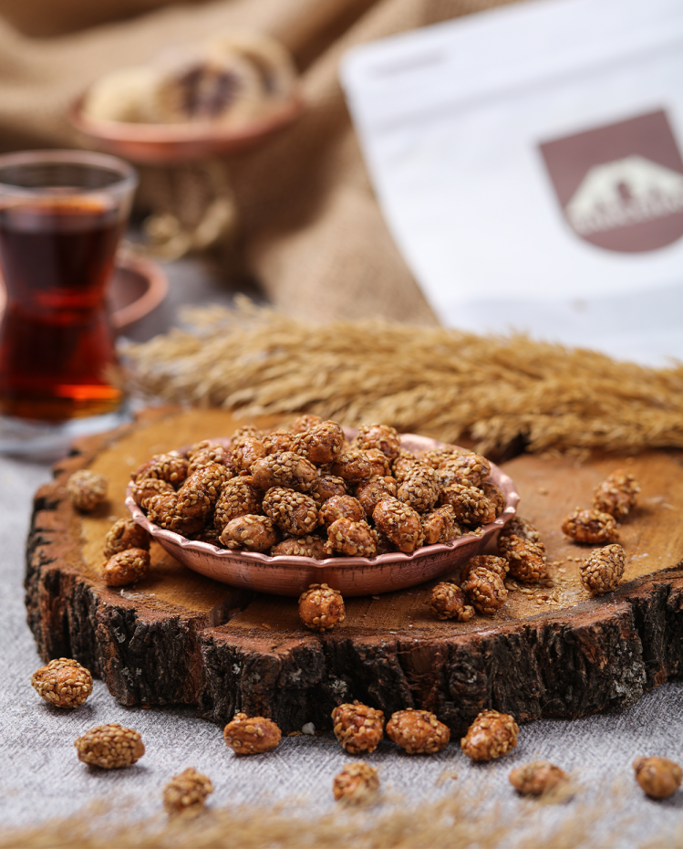 Doğal fıstığın çıtır lezzetini, tatlı bal ve susamla buluşturan Susamlı Ballı Fıstık, hem atıştırmalık hem de özel ikramlar için ideal bir üründür. Dengeli tatlılığı ve yoğun aromasıyla her lokmada keyif verir, çay saatlerinin ve davet sofralarının vazgeçilmezi olur.